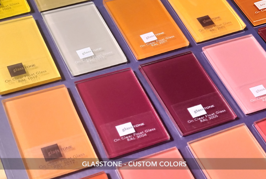 Backpainted Glass merupakan sebuah kaca yang diberikan proses pewarnaan dengan menggunakan cat khusus pada salah satu permukaannya, sehingga menghasilkan sentuhan warna yang rata dan solid. Masyarakat pada umumnya lebih mengenal kaca berwana ini dengan sebutan Kaca Glasstone. Kaca Glasstone ini sering sekali di aplikasikan sebagai Wall Cover & Backsplash pada kitchen serta Glassboard pada ruang meeting.
