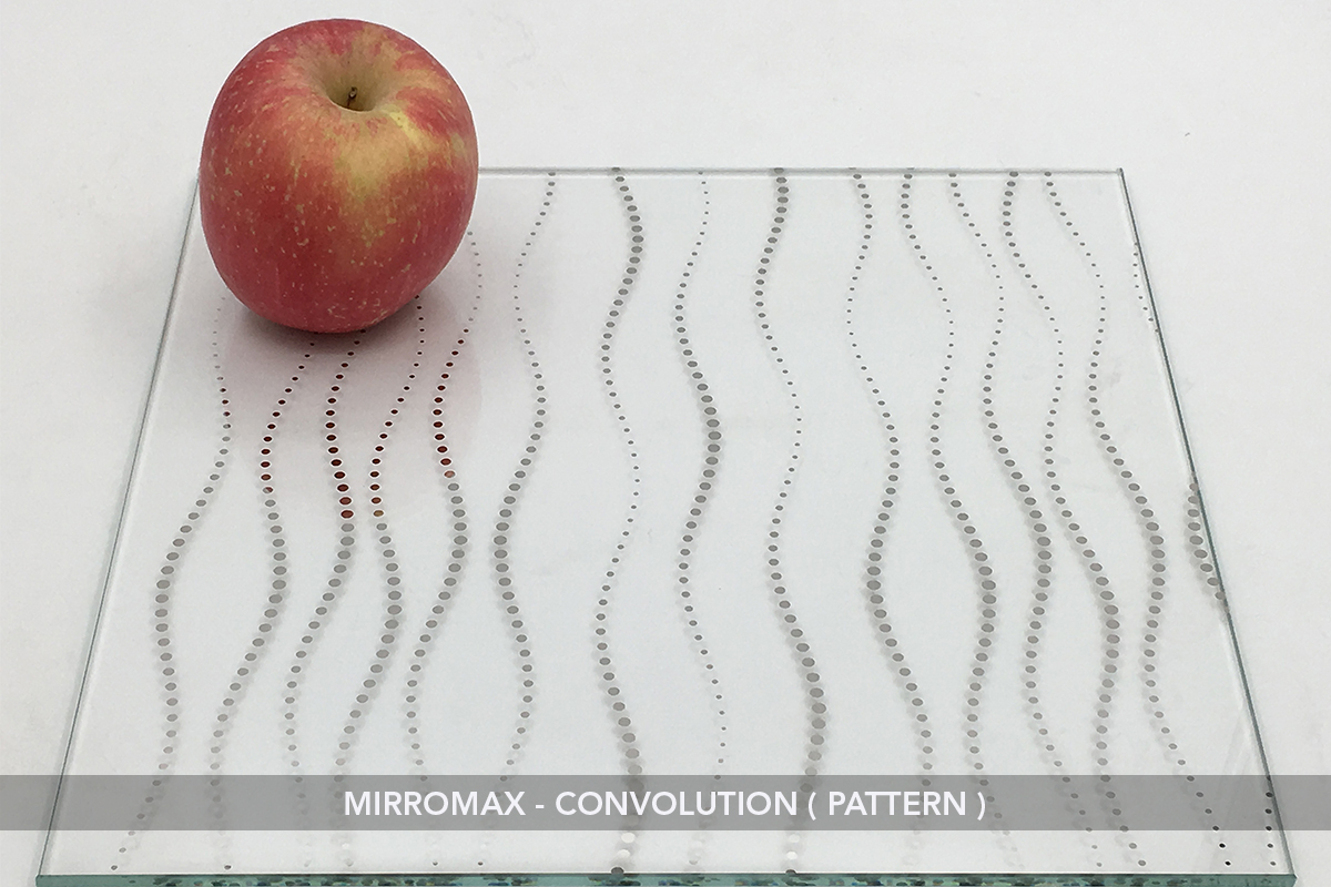 Mirromax Pattern is a mirror product which has a reflective pattern on the coating side. The reflective pattern is a permanent because the coating are made of titanium based composition.