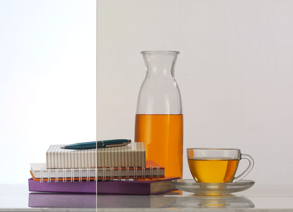 Kini, kaca polos sudah mengalami upgrade yang cukup signifikan, karena tuntutan dari para arsitek untuk menghilangkan distorsi warna hijau, dengan perkembangan teknologi yang ada, akhirnya kaca polos dapat disempurnaan menjadi kaca extra clear, dimana memiliki distorsi warna kehijauan yang minim dan menghasilkan pandangan yang jelas melalui kaca tersebut.