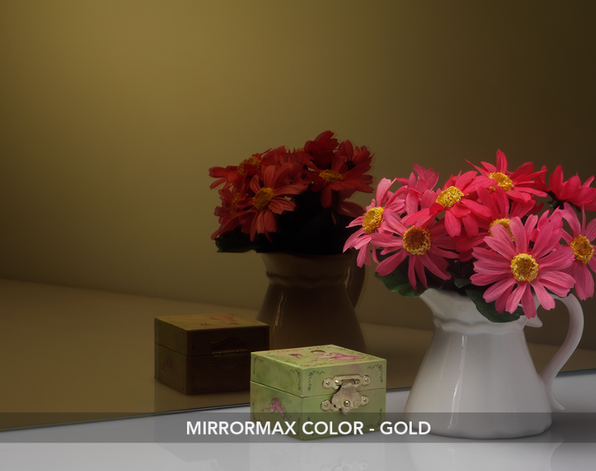 We introduced Gold Mirror as a part of the Titanium Mirror Series. More than just an icing on top of the cake, the gold reflective color from the mirror can help you build a story on which design is always based upon. Since sustainability also a part of our DNA, we introduce Mirromax Gold with the titanium mirror technology to make sure that this product will not be corroded and soon to be replaced. Therefore we are excited to integrate the color of this mirror with our theme.