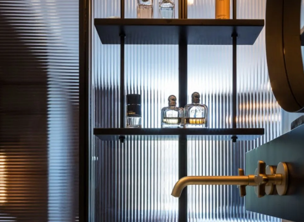 Pilihan kaca motif yang tidak kalah penting adalah series dari Mirromax Pattern. Tekstur daripada kaca ini bersifat coating dari logam titanium. Kalian bisa menentukan dan memilih dari motif yang tersedia untuk diselaraskan dengan style interior kalian masing-masing. Kaca ini sangat relevan untuk dipakai sebagai aksen kaca motif.