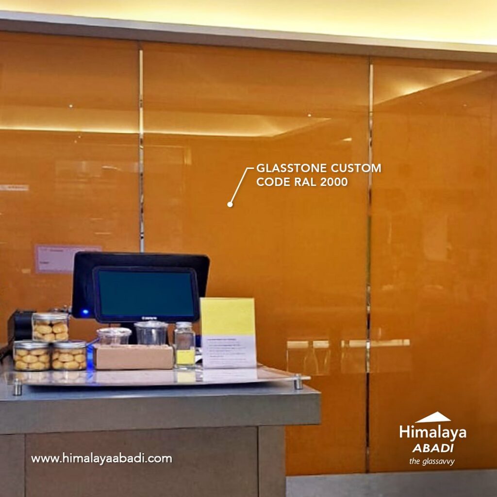 Kaca Glasstone Custom dengan ketebalan 8mm atau 10mm juga bisa menjadi pilihan alternatif yang menarik untuk menggantikan kaca laminated 4+4. Kaca ini merupakan jenis kaca back-painted yang dilapisi dengan warna solid pada bagian belakangnya, memberikan tampilan modern dan estetika yang menjadikannya pilihan ideal untuk dinding backsplash, partisi interior, dan elemen dekoratif lainnya.