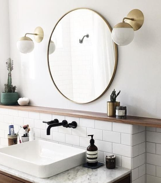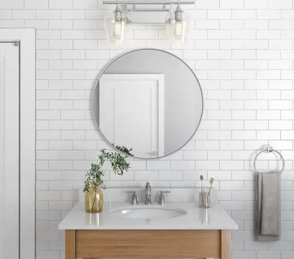 Karena kaca cermin pada umumnya tersedia dalam slab lembaran, maka dari itu kalian bisa melakukan custom dengan kaca cermin untuk membentuk lingkaran yang mana sangat baik secara estetika didalam ruangan. Pastikan kalian memilih diameter yang ideal untuk menggunakan jenis kaca cermin sehingga proporsional dengan ukuran kamar mandi dan wastafel.