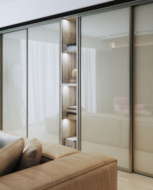 Pintu Kaca Geser Warna Solid dan Cermin?