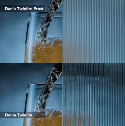 Supaya mempermudah visualisasi, kami lampirkan perbedaan tampilan visual side-by-side untuk kaca dania twinlite frost dan kaca dania twinlite biasa. Kami harap dengan perbandingan ini akan mempermudah kalian untuk memutuskan jenis kaca dania twinlite mana yang lebih relevan untuk dipakai kedalam desain kalian masing-masing.