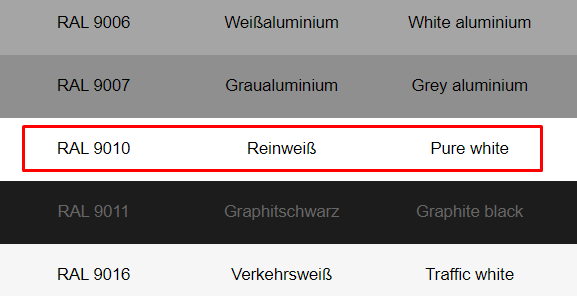Istilah warna “pure white” akan semakin kabur lagi jika kita melihat diagram warna dari www.ralcolor.com, dimana warna yang dimaksud sebenarnya adalah kode warna RAL 9010, bukan RAL 9003 untuk standard Bahasa Inggris didalam penamaan kode warna. Sehingga kami berharap kalian bisa berhati-hati dalam memilih warna putih yang akan dipakai di project kalian masing-masing sehingga menghasilkan efek putih yang kalian kehendaki.
