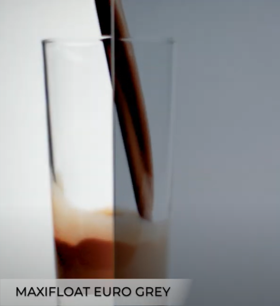 Jenis material kaca riben tersebut sangat identik dengan jenis kaca maxifloat tinted glass yang mana lebih umum dikenal dengan nama kaca maxifloat euro grey. Material kaca ini memiliki warna abu-abu transparan yang jikalau ditempatkan dengan pencahayaan yang tepat akan menghasilkan efek warna hitam. Seperti yang dibahas pada awal artikel, kaca ini bisa dibuat lebih hitam lagi dengan proses laminasi dengan kaca maxifloat euro grey juga sehingga akan mempertebal efek warna hitam daripada kaca tersebut.