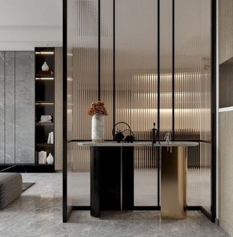 Sering dikenal dengan material yang disebut dengan kaca bertekstur. Salah satu motifnya juga sering dikenal yakni kaca moru glass, atau kaca motif garis kaca fluted glass, kaca reeded glass, atau juga dengan nama kaca ribbed glass, penggunaan jenis kaca ini lazim dipakai untuk area office karena sekarang tidak lagi menggunakan kaca yang polos-an aja untuk area kantor. Kami kelompokkan series ini dengan nama Dania Patterned Glass di Himalaya Abadi.