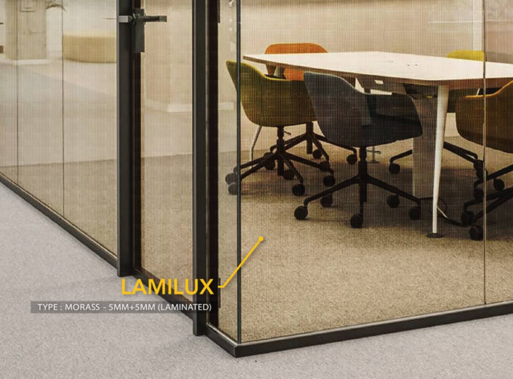 Series kaca lamilux fabrics sering disebut dengan nama “kaca motif kain” atau juga dengan istilah “kaca kain sutera“. Sering dipakai untuk kebutuhan office karena kaca ini bisa kalian custom jenis fabric apa saja yang bisa disematkan ke dalam desain kalian masing-masing. Pastikan penggunaannya sesuai dengan desain yang kalian harapkan.