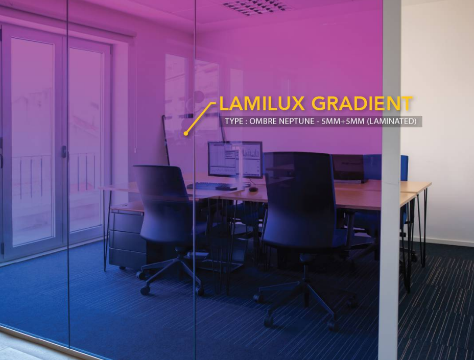Tau gak sih, sekarang pilihan warna untuk kaca sudah ada banyak banget. Bahkan sekarang kalian bisa memilh kaca dengan warna gradasi seperti pada contoh. Penggunaan warna pada industri desain adalah hal yang sangat krusial, oleh sebab itu kalian perlu memilih warna yang sesuai dengan kebutuhan desain kalian masing-masing. Tidak lagi harus terpasung dengan kaca polos biasa yang tidak bisa memberikan solusi warna atau transparansi yang ideal, bukan?