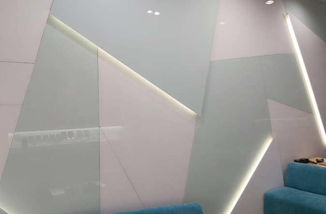 Untuk alternatif kaca warna putih susu berikutnya adalah Kaca GlassTone yang dicustom diatas kaca buram, sehingga efeknya kaca ini tidak mengkilap, justru menimbulkan kesan matte ala kaca buram dengan permukaan kaca yang halus.
