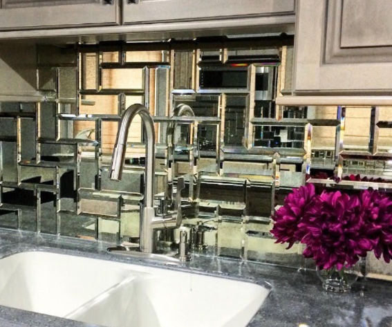 Selain dari efek ambience terkait dengan luasan ruang, kitchen set kaca cermin akan menawarkan keunggulan dari segi fleksibilitas ukuran. Kalian bisa memilih slab yang lebih besar atau juga kalian bisa memilih rangkaian dekorasi dengan memotong kaca cermin menjadi ukuran lebih kecil seperti contoh mirror tiles yang kami upload pada kesempatan ini. Karena fleksibilitas ukuran, maka banyak sekali desainer yang sering menggunakan material kaca cermin untuk kaca kitchen set.