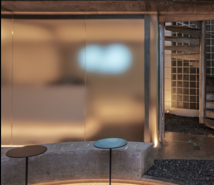 Kami melampirkan salah satu contoh ilustrasi penempatan dari kaca acid atau acid etched glass supaya kalian bisa dapat gambaran visual lebih detail mengenai kelembutan sisi buram daripada kaca acid untuk dipakai di proyek kalian masing-masing.