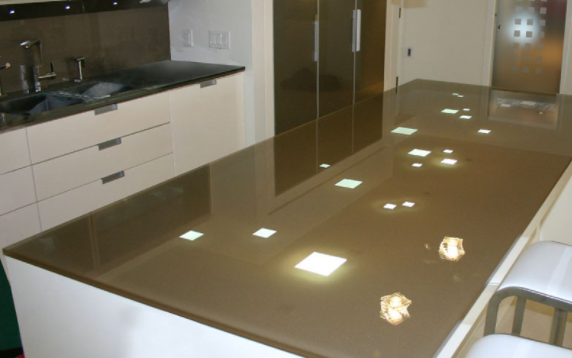 Meskipun jenis kaca ini populer untuk warna putih (kaca glasstone white dan kaca glasstone super white atau kaca glasstone pure white), jenis kaca backpainted glass merupakan pilihan yang paling favorit untuk penggunaan diarea tersebut. Namun tentu saja karena warna putih tidak bisa masuk kedalam semua tema desain, maka dari itu kami informasikan mengenai Kaca Glasstone Custom. Dengan menggunakan kaca glasstone custom, kalian bisa memilih kaca ini dengan warna apapun, ketebalan berapapun (tentunya yang sesuai dengan standard industri kaca), dan juga bisa ditempered untuk memperkuat molekul kaca tersebut untuk pemakaian di dapur.