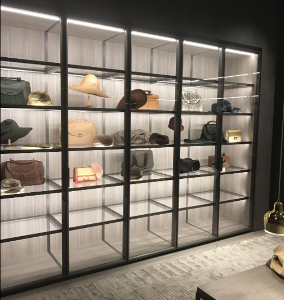 Karena pada prinsipnya penggunaan material lemari ini akan difungsikan untuk memajang tas mewah, maka dari itu pastikan kalian menggunakan jenis kaca extra clear atau kaca ultra clear. Karena kaca ini diproduksi dengan teknik kaca low iron glass, maka kaca ini tidak lagi berwarna kehijauan, melainkan kalian bisa mendapatkan warna yang sangat bening dan akurat. Sehingga apapun benda yang dipajang didalam lemari tersebut akan terlihat bening dan mewah.
