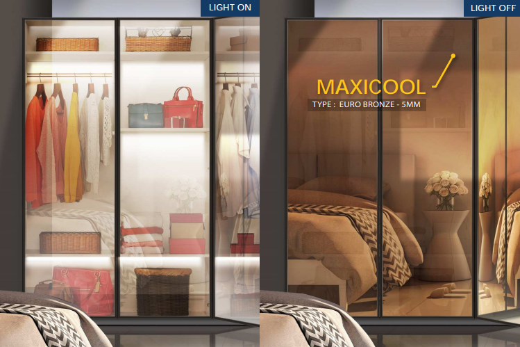 Kaca Maxicool adalah kaca reflektif yang kerap sering disebut dengan nama kaca one way glass atau kaca satu arah, atau bahkan ada yang menyebutnya dengan kaca cermin dua arah. Penggunaan material ini sangatlah ideal dan relevan karena kalian bisa bermain dengan lampu untuk mengatur pantulan untuk ditempatkan benda yang hendak dipajang.