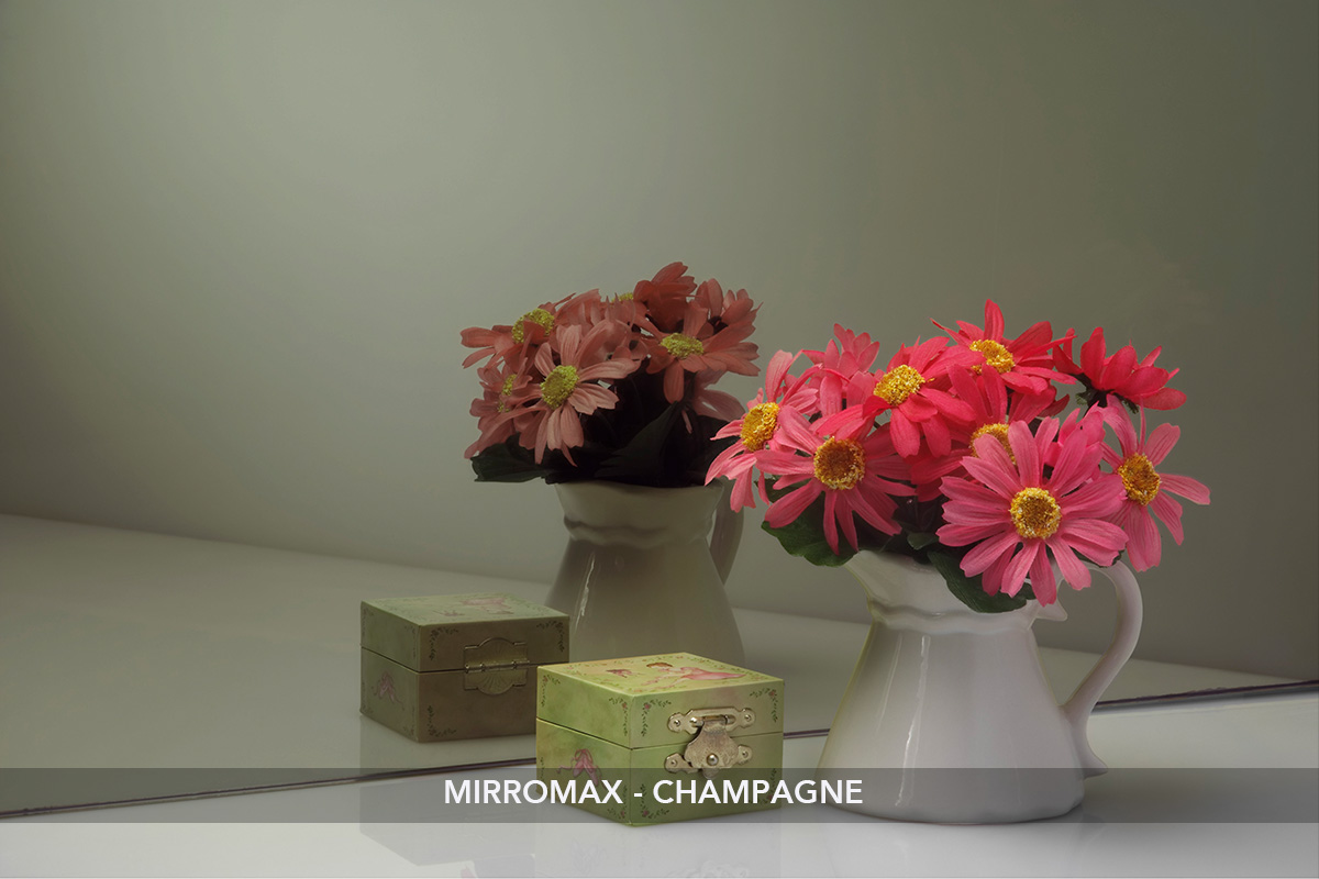 Mirromax Color adalah produk cermin dekoratif dengan varian warna beragam, yang memiliki lapisan coating berwarna dari titanium dan berbagai jenis logam, yang diberikan kepada pada material kaca bening (Clear Float Glass) ataupun kaca berwarna (Tinted Float Glass). Mirromax Color memiliki pilihan warna yang atraktif dan beragam, yang menambahkan keindahan pada penataan interior Anda. Kandungan lapisan coating dari material stainless steel dan titanium akan memberikan daya guna yang lebih baik dan tahan lama pada tampilan mewah interior anda.