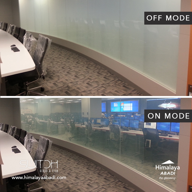 Switch Glass merupakan perpaduan kaca, kaca film dan Liquid Crystal yang terintegrasi untuk menghadirkan privasi dalam sekejap. Switch Glass dapat berubah dari kondisi buram menjadi bening dalam sekejap jika dialiri listrik(Privacy Glass).
