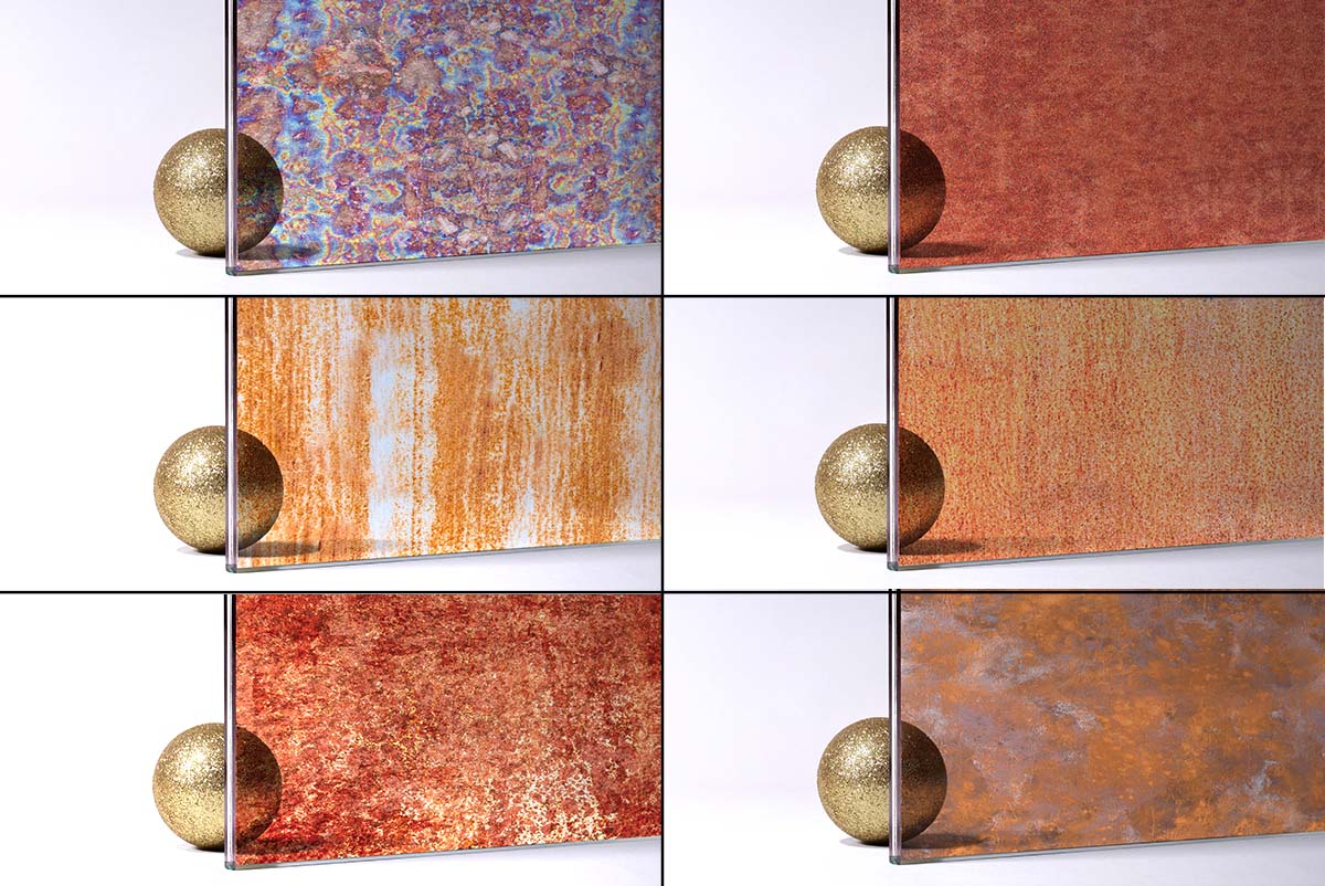 Kaca warna solid dengan ragam warna dan surface yang bertekstur.