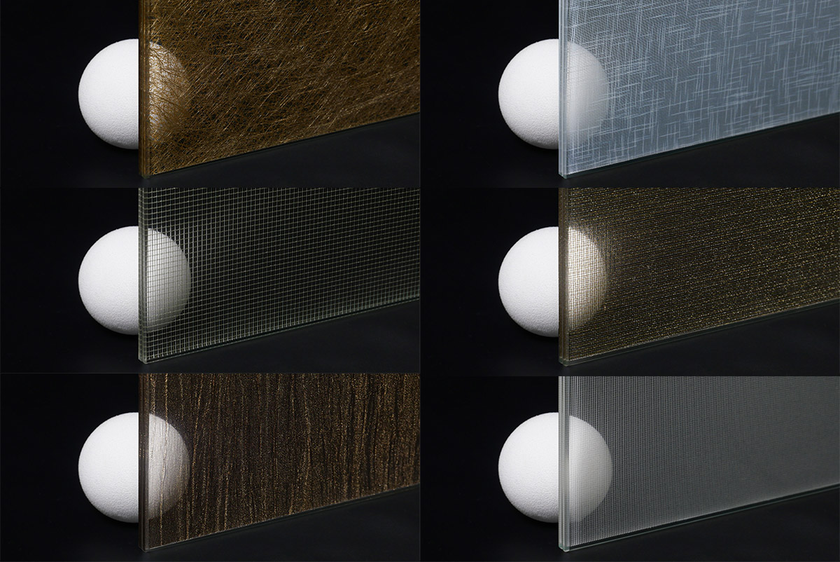 Kaca dekoratif dengan proses laminasi fabric dengan dua bahan kaca.