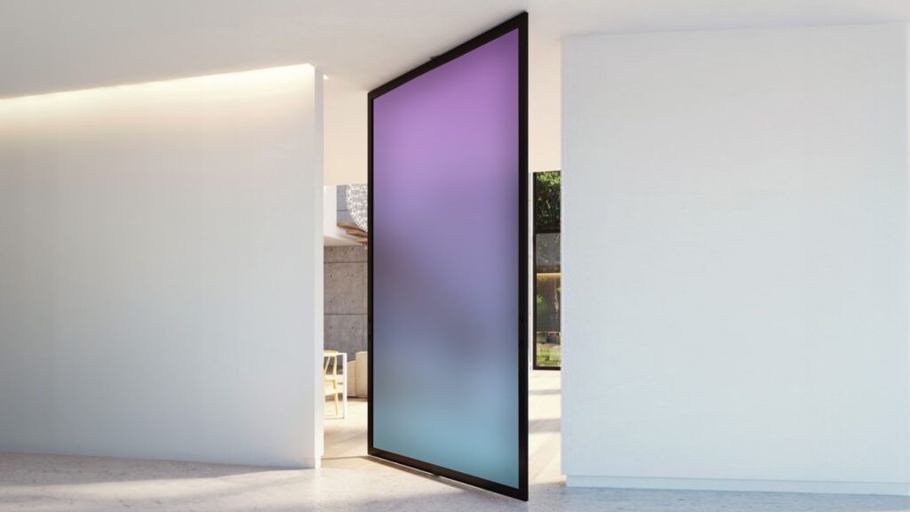 Selain dari series warna gradasi yang tersedia, Kalian juga bisa menggunakan lebih dari satu warna gradasi dengan teknologi kaca Lamilux seperti tampilan foto diatas, dimana sebagai salah satu contoh penggunaannya pada area partisi ruangan dengan menggunakan teknologi Lamilux gradien dengan perpaduan kaca satin atau Satin glass.