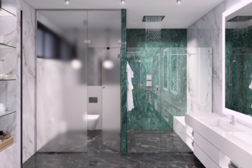 Sedangkan kaca untuk kamar mandi yang mana mau menghendaki efek bening, kami sarankan menggunakan kaca extra clear atau kaca crystal dengan ukuran modul maksimum di 2.14 x 3.66 meter. Kaca ini berbeda dengan kaca polos biasa dari segi warna dan kejernihan kaca tersebut. Kita bisa menggunakan jenis kaca ini untuk menghadirkan warna jernih dan menghilangkan nuansa hijau pada ruangan.